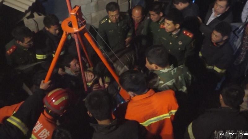 图:消防官兵用深井救援设备救出落井儿童